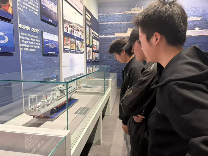 参观过程中,同学们不时交流心得体会。“以前对海军的认识只停留在新闻里,今天亲眼看到那些经历过实战的舰艇和文物,才真正理解了‘向海图强’这四个字的分量。”“人民海军从无到有、从小到大、从弱到强的历程,就是一部浓缩的中华民族伟大复兴史。作为新时代青年,我们既要铭记历史,更要把这份爱国情、强国志转化为报国行。”25级学生路同学感叹道。