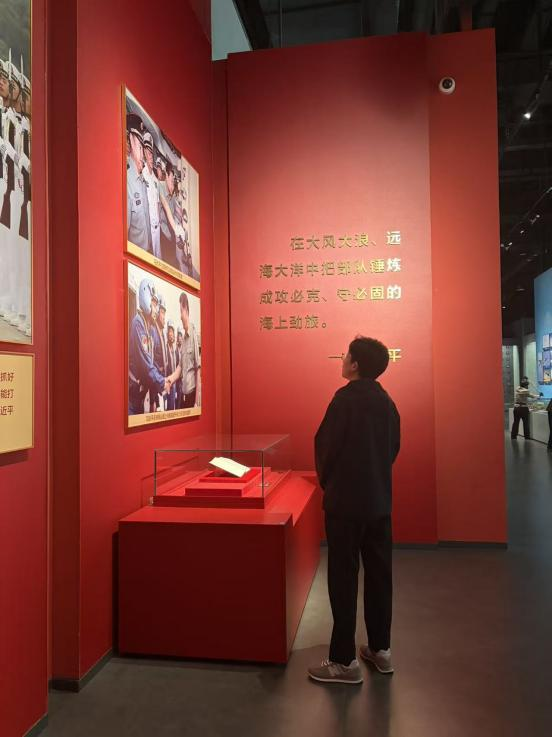 在“海上英雄”专题展区,同学们在“海空卫士”王伟、“逐梦深蓝”张超等英烈事迹展板前久久驻足,讲解员动情讲述着一个个惊心动魄的战斗故事。同学们神情肃穆,仿佛置身于炮火纷飞的战场,真切感受到“哪有什么岁月静好,不过是有人替我们负重前行”的深刻含义。